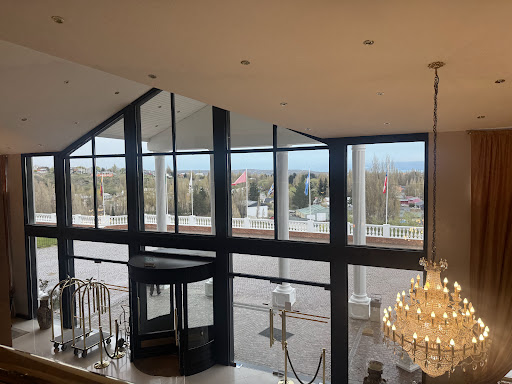 The hotel is a bit far for the center-20 minutes walk, but it worths as it faces the lake, being located on a cliff. Make sure you get the lake view room. ||We booked a room with view, the travel agency sent 2 e-mails in order to make sure we get what we’ve booked but the front desk didn’t care about it. We spent the first night in a room facing a garden. The receptionist (not the young one that made our check-in, but his older colleague) was rude, unhelpful and arrogant. He actually told me that a garden view is a view and that they are not obliged to give us the lake view room. I wrote a complain, he refused to register it, even though it was addressed to my travel agency. He claimed the manager was not there, saying that he would handle it to the manager the next day. He never did, when we cheked-out he “misplaced” it and said he would send it by e-mail. Never did. |The next day we got the lake view room. ||The lobby, the swimming pool and all the common spaces looked very nice, beautifully decorated, clean. |The rooms were large, clean, comfortable. My parents had an apartment and was looking amazing- stylish furniture, luxurious bathrooms and very very large. This apartament was perfect!|The breakfast was an excellent one, with a large variety of hot and cold choices, a lot of pastries, fresh juice and very very good coffee. The staff was helpful, nice and attentive. |We also tried the restaurant, we had an excellent dinner and I warmly recommend it. They offer a large variety of wines and this...