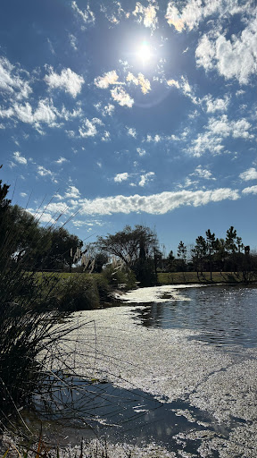 Frente a nuestra cabaña teníamos un hermoso parque con un buen césped, bien acolchado para disfrutarlo descalzo, con juegos de plaza muy necesarios si vas con niños (están en el sector central, a 20 metros de cada cabaña, por lo cual, no es un problema el ruido. Hay un quincho muy práctico, de uso común, con mesa de ping pong, metegol, horno de barro, parrillero y baño público. Al lado del quincho, hay un muelle que está genial, sobre el lago, para sentarse a la mañana temprano o al atardecer. Incluso hay escalera para bajar a la costa del lago.