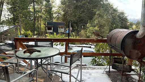 Read moreLo bueno: El prédio es bonito Tiene un quincho muy bien equipado y con parrilla de uso común, que de puede usar gratis. Te prestan culipatin para usar en el predio. Lo malo: Nos exigieron el pago del total (salvó la seña) en efectivo. No tiene lógica ya que como alquilamos 3 cabañas por varios días, era una suma alta de dinero como para exigirla en efvo (jamás me había pasado). El prédio casi no tiene iluminación, y cuando nieva de hace muy complicado meter y sacar el auto (deberían encargarse ellos de asegurarse que los huéspedes tengan el camino internos el predio despejado). A las cabañas le faltan mantenimiento: el hidromasaje no funcionaba, el inodoro estaba tapado, wifi regular. No nos dieron recomendaciones turísticas ni...