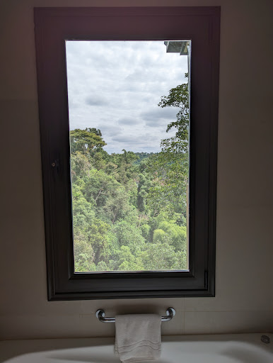Read moreNestled on the edge of the Argentine rainforest, the Iguazu Jungle Lodge offers a unique immersion into the lush environment surrounding the world-famous Iguazu Falls. This eco-friendly lodge strikes a delicate balance between a rustic wilderness experience and comfortable accommodation. Its strategic location provides guests with an authentic jungle atmosphere while maintaining proximity to one of the world's most spectacular natural wonders.||||LOCATION: Perfectly situated just minutes from Iguazu National Park, the lodge offers an incredible advantage for nature enthusiasts and waterfall chasers. The property is surrounded by dense subtropical forests, providing an immersive natural experience. You're close enough to the falls to make multiple visits convenient, yet secluded enough to feel truly connected to the wilderness.||||DINE + DRINK: The on-site restaurant focuses on local Argentine cuisine with a rainforest twist. While not gourmet, the food is fresh and satisfying, featuring regional ingredients. Breakfast is simple but delicious - especially the baked goodies. The bar offers a decent selection of local wines and cocktails.||||ROOM: We stayed in Room 216, so this review is based on that; Rooms are designed to blend with the natural surroundings, featuring wooden furnishings and large windows that invite the jungle inside. SIZE: Spacious enough for 2 adults and simple baggage; VIEW: Mindblowing views of the river and the Jungle from the huge balcony attached to the room - a great place to unwind!; AIR-CON: Perfectly functioning cooler that helped in setting the perfect room temperature; BED: Comfortable bed that played the expected part of putting us to sleep; BATHROOM: Good sized bathroom with a Stand-in shower; TOILETRIES: Ok quality toiletries, better to bring your own!||||FACILITIES: Super Random “Gym” that is more of a play area with no good equipment. But the outdoor pool is a great place to chill and soak in the Jungle vibe!||||SERVICE: Friendly staff that cared for all our needs with a smile and made us feel at home and well taken care of. ||||HOW WIRED YOU WILL BE: Free Wi-Fi that works well all over the property, and the speed is good! Big Smart TV dishing out a wide variety of channels spanning sports, news, music, movies, and entertainment- primarily...