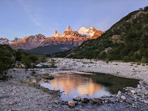 Read moreWe greatly enjoyed spending two full days here in the middle of the mountains. The popular day hike to Campamento Poincenot and (if you're ambitious) Laguna de Los Tres starts outside the door, and we could see the famous peaks each morning from our window. Another day we did a different hike that starts about 1 km further down the road.||||Since it's an isolated spot, we relied on the Hosteria for our meals, which were wonderful. Breakfasts are included, packed lunches are available, and for dinner you can choose from a menu of several delicious items. Our room and the common areas were very pleasant and were great for relaxing after a strenuous day. The proprietors were unfailingly helpful and gave us all the advice we needed on trekking options.||||If you don't want to rent a car, you can take a bus from El Calafate to El Chalten (we used Lengas) and then continue on route 23 (it becomes a gravel road at that point) by taxi to the Hosteria. Also after your trek to Poincenot, for variety you can hike downhill into the town and then take...