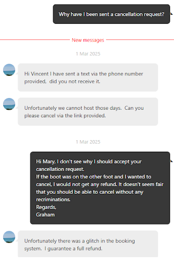 Update: The initial response to my review from Mary has now been deleted (photo 5 shows the start of that response) to the response below that now denies any knowledge of me! How dishonest can someone be? Please don’t give this woman the pleasure of taking your money.
