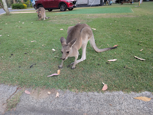 Other - at first glance the kangaroos scattered around the park with the parrots and bush turkeys looks idealic but honestly the kangaroos were a huge nuisance, and the main reason we are giving 4 stars, not 5. There are signs everywhere saying don't approach the roos, they can be aggressive etc, except the roos are so used to people feeding them that they come right up under the awning of the caravan and help themselves to your food. Anything edible left outside your van will be rapidly taken by birds or roos. Our smaller kids in particular were terrified by kangaroos coming right up to them and we spent a lot of time shooing them away from the kids.