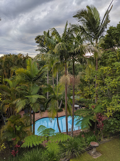 We stayed in Garden Suite which was comfortable and well appointed for the needs of 2 people. Light continental breakfast was provided and appreciated. Location is quiet with a lovely pool area. Patio is a lovely place to sit and have breakfast looking out over pool to the mountains. Beds are comfortable. Unit had a damp musty smell which was very unpleasant, however we put that down to the very recent flooding rain in area. Bathroom ok but shower recess has mould in grout and the hob is very high to step over. Parking is tricky, down a steep drive and sharp turn into small parking bay making exits challenging to avoid drop over high driveway edge. Advised by manager that this is being addressed soon. Update on this review October 2022 advised by management that bathroom has been renovated and...