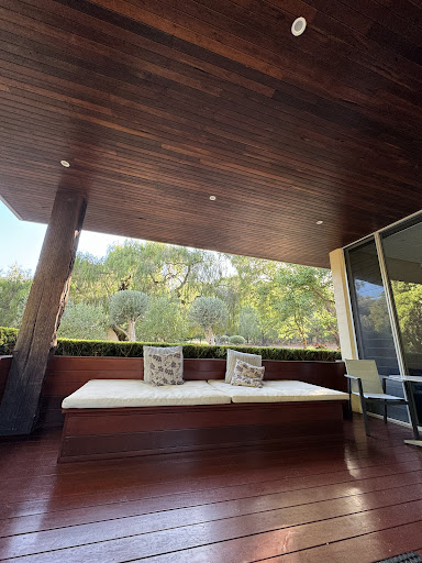 The literal meaning of Losari ( Spirit of trees/land),is abundantly manifest in the views as you enter the beautiful serene estate , painstakingly manicured, yet framed by the national park with all its flora and fauna at the perimeter. We enjoyed so many beautiful walks around the property and loved spotting the fairy wrens and red robins and gazing at the gorgeous sunrises and sunsets from our patio deck . If you are lucky you might be joined by the gorgeous doggies Peanut and Biscuit playing a game of Tag - running along side on your walks! Tennis was so enjoyable with them, who needs any referee ,they were officiating- tilting their heads attentively to every volley 😃