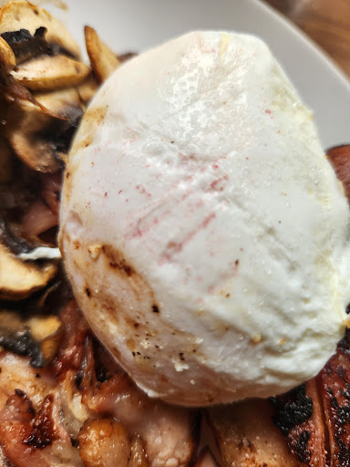 We were keen for the affordable greasy spoon cafeteria style breakky downstairs, very quickly destroyed by the $5.40 cup of coffee served in a hospital cup, with no saucer or spoion (i used a dessert spoon feom the cutlery holder) unsealed creme with an inch of foam and $2 charge for soy milk; $2 via me & u app, 90c on paper menu. I alerted the counter staff to ask why the cost difference as everything else appeared the same as paper menu, he had no answer or care whatsoever. Then breakfast arrived, *ordered the menu avocado on sourdough with lemon, Feta, and cheery tomatoes and an array of sides; firstly food was served upon a red/white paper underlay which stained the poached eggs and sourdough with red dye????? And then, there was no lemon nor Feta on the dish.