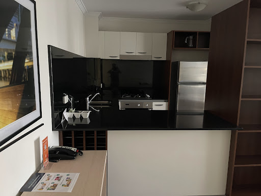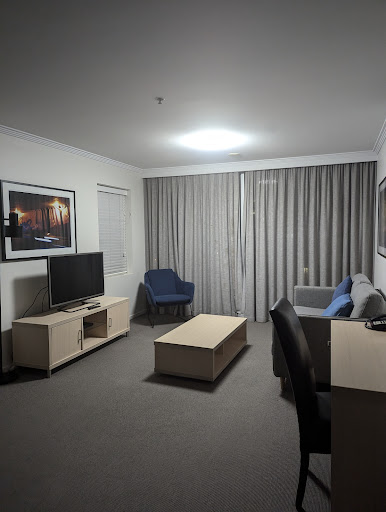 A very convenient place to stay with gorgeous views of the city. Loveky big terrace to enjoy warm evenings. Very central. The staff friendly and helpful. Administration was a different experience indeed. Unless you know how to use QR codes there is no way to know what facilities the hotel has. Nothing printed to show what facilities are available as in normal places. How much does it cost to leave a simple sheet of available facilities ? TV ? Only one channel available. TV channel 9. Why no Sky or Netflix ? Just as we were leaving we discovered that a warm swimming pool was available. Never saw anything about breakfasts being available. Kitchen in our apartment very poorly equipped. Did they buy their pots from a charity store ? No coffee making facilities other than instant coffee. After 2 days a kind young man at reception provided a coffee plunger, known as a French press in Aussi. Apparently he needed to go and buy it. One would have thought that for the price, they could provide coffee making facilities and simple things like salt and pepper sachets. "Sorry we don't provide that". Instant coffee, tea bags, sugar and tiny long life milk sachets were provided. We needed to buy dish washing liquid as only one tiny sachet of dish washing detergent was left under the sink. I rented a central apartment in Paris some years ago. Previous tenants left things like cooking oils, condiments etc for new tenants. I did the same when I left. Another suggestion for this apartment complex. We used 2 different apartments because of our travel arrangements. One apartment had no sink plugs. The other had sink plugs. In the second apartment, the water flow in the kitchen was just a dribble. Reception said the maintenance man was on sick leave. I wonder how long the water problem had been evident ? The terrace slding door in the 2nd apartment very difficult to open or close. However clients need to tell reception of any issue in apartments. Comparing administration with any cheap motel in NZ or the motel we used in Beaudesert, where coffee making facilities, well stocked things like salt, pepper, decent pots, fry pans available...this apartment complex " Could do better". Would I use this place again ? If they improved admin problems....Yes. $3,300 for 8 nights for 3 people, 2 bedroom, 2 bathrooms apartment. As aforementioned, the position is perfect. Administration and maintenance not...