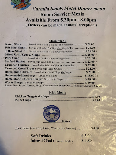 Read moreAn impeccable motel, upon entry to the sizable and well priced room; a feeling of luxury and comfort is presented. After a long day on the road the Carmilla Sands Motel provides an excellent rest point due to the friendly easy going service welcoming you with a great smile. When on the long Australian roads a nice meal is always appreciated and the Carmilla Sands Motel provides a lovely evening meal to finish the up the day. However I must say an extra 50ml on the shower curtain wouldn't go a stray.