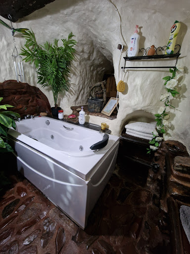 The place is unique, for being a dugout, bringing the benefit of underground homes for the temperatures, while you still get some daylight coming in from one side It is huge, with a patio, 3 bedrooms (with comfortable beds), 2 bathrooms (one with direct access from the bedroom, the other one featuring a spa), a kitchen, a living room... It is well equipped, with lots of kitchen appliances (including fridge, microwaves, oven, burner, teapot, coffee machine, toaster), washing machine, TV, books, boardgames... Wifi works really well