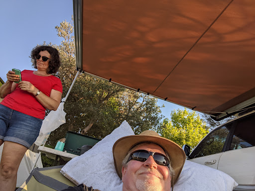 We were there at the beginning of summer, before school holidays. So the park was largely empty. Only one other tent on an unpowered site next to us, and probably about 30% occupancy mostly campervans, with a couple of caravans, and one trailer tent in the powered section. This covers most of the park. Still, the ambience wasn't Paradise so much as pre-retirement village parking.