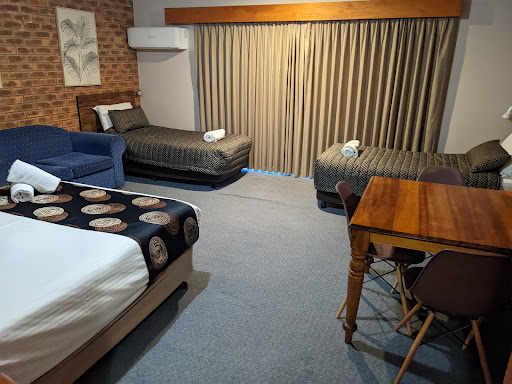 Read morePassed through last week with my family for a one night stay. The motel is located at the crest of a hill, in a very quiet part of town (next to retirement villages) Drive to the main part of town is about 6-10 mins. Lovely service by the owners. We were in a family room at the very end of the complex in room 21. Room 21 is quite large, including a large bathroom and parking space out the front. The only disadvantage about being at the end is that it's right next to the hot water systems for the motel which can be really noisy at night. The room was clean, but a little maintenance was needed. Lots of spots in the carpet where it was bunched up as it looks like it had not been laid down properly, which was a tripping hazard especially for my little ones. Had a bit of a noisy night too as our neighbours were very loud all night door slamming and smoking right outside our bathroom window (the window could not be closed completely as it has a 2cm mesh opening) so the bathroom always smelt...