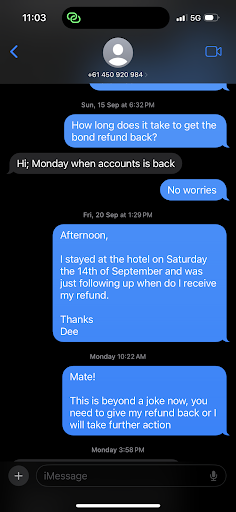 Read moreFirst of all they said the bond wouldnt be over $200 but on the day made it $400 instead plus the booking itself which was a total of $850 for a one night booked with two rooms. Once checked in walked in and an absolute mess! Got told to get two bedrooms but i had one bedroom and the other bed just in the middle of the dining area.. Plus with the one bedroom the doors don’t close at all and also with the bathroom the door doesn’t close. Once walked into the dining area the walls had marks everywhere, holes and the picture frames were all slanted and just look trashy. Smoke alarms were broken, wasn’t even bed sheets on one of the beds and wasn’t even a king size was just two single beds put together. Fridge reeked of off food. Blinds were broken so once they were closed you can’t open them. Tried getting refund or swapping a room and they blamed it on me saying they had 4 cleaners in there but we had to make them finish early cause i wanted to check in early when the check in was at 3 and i got there at 3:15? Didn’t get a apology or anything. Please dont waste your time staying here and find something actually nice that isn’t this...