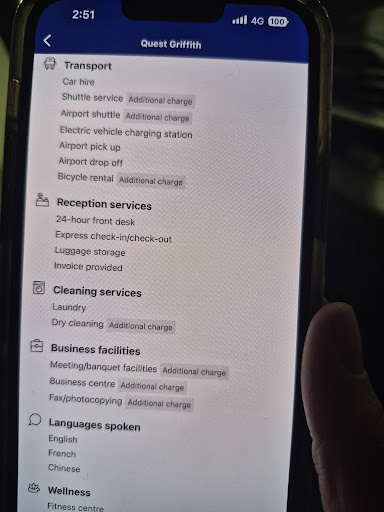 Unfortunately, this experience has changed how I view Quest Griffith. The customer service on this occasion was beyond unprofessional. I hope management seriously addresses how guests are spoken to moving forward.