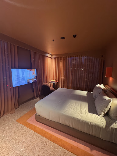 Read moreHaving stayed in over 20 hotels in Melbourne so far, I felt this hotel truly deserved a lot of praise. When I first entered the hotel, from the orange-toned check-in desk to the colorful screen behind it, it was a soothing and pleasant experience. Two contrasting words came to mind: quiet and lively. However, the check-in area was a shame. During busy times, it was packed, and I had no idea where to find it. Still, after a short wait, the hotel staff warmly welcomed me. The atmosphere was casual, yet welcoming. Check-in was quick, and I was treated to a welcome Accor Platinum experience, including a late check-out at 2 p.m. There was no fuss. After reading the hotel introduction, I headed to the elevator. The elevator itself was quite modern. We entered our keycards into the pad and were directed to the elevator, which took us straight to our floor without having to press a button. It was a very modern and clean system. From the moment we got off the elevator, we were impressed by the hotel and headed to our room, the Platinum Suite. My room on the 14th floor was, quite literally, a work of art. The room's seemingly high ceilings, visible as I opened the door, surprised me. While the living room, bedroom, and bathroom areas had standard ceiling heights, the area near the window was considerably higher. Lying on the bed, the ceiling near the window was practically invisible. This was akin to the feeling I get when lying in a tent and looking outside, and the lack of a ceiling was incredibly cozy. The shower itself felt the same. It felt like I was showering in the woods. The view, with its floor-to-ceiling windows overlooking downtown Melbourne, was truly impressive. The bed was also fantastic. I almost fell asleep the moment I laid down... Be careful with the bed! It was a very comfortable bed that made me fall asleep immediately. The overall feel of the room was modern and futuristic in function, but the design and color palette, with its natural earthy feel, was quite unique and captivating. The bathtub being located near the bed was philosophically appealing. The balcony and the minibar with popcorn and potato chips further enhanced our love for the room. Perhaps because our room was on the 14th floor, there was no noise. I slept really well. The hotel's 12th-floor mid-air lounge, an auxiliary facility, feels like another landmark rooftop in Melbourne. The cocktails, the atmosphere, and the stunning night view made me feel so good about staying at this hotel. Overall, it was a great experience and stay. I would definitely...