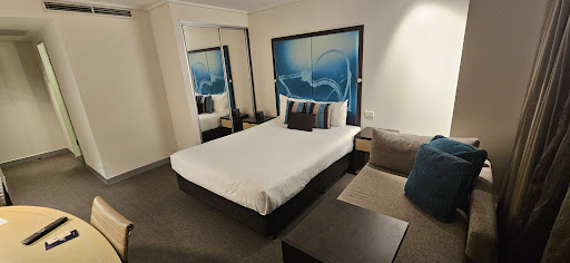 Read moreNice Hotel but maintenance neglect lowered the experience: Booking issues: I was unable to book as a family of 6 as the computer only offered the King Jr with 2nd room family discount, based on 4 people and didn’t account for the extra beds when the 2nd room was added. I rang the hotel and was assured 6 could turn up, so that worked out ok. Lovely rooms. Sink issue: The bathroom sing plug was stuck down so the water would not drain.. I call reception and a friendly maintenance man came up and fixed it right away. Phone Issue: The Bedside phone was broken, so I used the phone in the other room to tell reception, and the maintenance man changed it immeadiatly. Bed light Issue: The bed light constantly flickered. I left it off. Sofa bed Issue: The sofa bed was not made up, so I called reception and they said it was broken and would get a roller bed brought up (if they new it was broken then why was it there and not replaced?) While waiting my son opened the sofa bed ok and so the staff lady made it up, but came back later saying the manager said it was not safe and to change back to a roller bed. While folding it back we could see the problem was a bent piece of metal, easily fixable with a quick hammer. Rolla bed Issue: The hotel lady (a lovely friendly person) wheeled in the roller bed and a wheel feel off. We looked at the other wheels and another 2 were about to fall off, which I fixed simply by tightening the nuts with my fingers. This should easily be spotted by a general equipment check, if they do them? Pool towels Issue: A hot weekend and the pool was popular and the towels ran out while we were swimming.. 2hrs later and no staff had come buy to check, or top up the towels.. this should be routine. Pineapple juice Issue: At breakfast 2 of the 4 juices were missing their elevation stands, which meant the juice tap was lower than the drinking glass, so you had to hold the glass sideways to get the juice on it. Should be easily fixed with some sort of other stand while you get replacements.. if you are getting replacements? General app info Issue: There is very little info on your website about how the hotel services.. like no in-house laundry and where to find the nearest laundry Matt. Staff knowledge Issue: Speaking to the maintenance and cleaners, they did not know if the hotel offered any laundry option. Any staff that have customer interactions should be also trained as ambassadors for the hotel and be well versed in all knowledge of the hotel, even the janitor. Pool Issue: The pool has 16 large patches of missing tiles on the bottom, with exposed concrete and the water proof sealing rubbed off. Stepping on the concrete was unpleasant. This would take years to get to this point, which shows wilful neglect. Take some time to fix it as with the sealing gone the water will move through the concrete and cause major structural damage and the whole pool will end up needing to be replaced.. think about how that will impact your business.. Gym Issue: The gym was small but nice, however there is no fan.. and when you are hot and sweaty you need some airflow.. Garage Issue: After checking out there was no way to get back into the Novotel car park (other side of the road) as the entrance door the lift area was locked. A sign said Novotel guests use your room card to access or ring button for assistance. However we had returned our room card at checkout and there was no assistance button on the panel!!?? Other guests were there and confused as well. I went back to the Hotel and was told to use the narrow driveway ramp entrance around the back (not safe for my children). Why is there no sign at the front doors advising this to Hotel guests? We all went around the back to find the garage roller door down and closed and other guests sitting on the ground, waiting for a Hotel staff member to arrive. When she got there she apologised that the garage was unmanned due to it being a public holiday. This should have been planned for as public holidays are not unexpected. YOU CAN DO...
