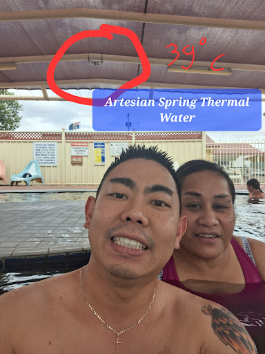 Stayed here for the night as we had a car breakdown and this was the nearest town with a car hire business. The main park was full so we were in the location with units and with 1 pool 1km away. The place was pretty retro and needed a make-over. Was like a 70s brick motor inn with a REALLY hard bed! Not a place I would stay more than 1 night. We brought packed food to make breakfast in the morning but found the stove top wasn't working. Tried calling a few different numbers to get help with it (about 90 minutes before check-out time) and couldn't get a response. Eventually did just in time and got to use the kitchen next door before we had to leave. Anyway, the feature is obviously the pools. We used the big pool near our room which was nice (and really hot). After 20 minutes we got out as this one pool was 40°. Later we drove to the other location. Here the pools were great! 5 pools with different temperatures which was nice. We had one incident that really ruined the vibe though!!! My wife and I were having a nice chat (after a rough few days with our car drama), she moved in to give me a kiss and we were suddenly interrupted by a man standing over us by the pool. He was a staff member of the complex and in front of everyone else nearby, he said, 'you can't do that here. There are people around. If you want to do that, get a room!' We initially thought he was joking but NO! He was seriously scolding a husband and wife for having an innocent kiss in the pool!! After he walked off, the other couples around us where laughing and also shocked. One man commented that he hadn't heard anything like that since being told off in school! It was ridiculous! My wife and I both just sat there in the pool in disbelief for awhile and our relaxation sure went out the window. It felt like we were in a strict religious country with crazy rules about public affection!! At the time we were quite mad and shocked by it, the next day it seemed also quite funny as it was so odd to be scolded like children in a public place like that. This place really needs to work on getting some upgrades and some customer service...