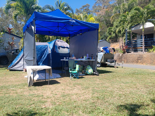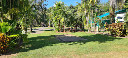 We booked our stay in “Port Douglas” at this park about 3 / 4 weeks in advance.. (it’s a 10 min drive to Port Douglas). On arrival I overhead a conversation with another customer complaining about how wet the sites were. (We have had a bit of rain in the area, not unusual for this part of Aus). My initial thoughts were I can’t stand people complaining about rain, however on arrival to our site - it was a MUD Pit. In all honesty, it should not have been available. We avoided parking out the front to try help it dry out but in three days (with sun), it did not dry out. Our young children could not play outside as the mud seeped through the TWO mats we had put down - not ideal for a few night stay. I was walking around in gumboots to avoid slipping over. We were parked near the road - which bears minimal security. The walk to amenities is about 250mtrs (up a hill) which was not suitable with a 3YO and 1YO at bathtime (through slippery mud).. We were in site 68 for reference - and all sites nearby to this one get all the rain run off from the park above. Some amenities did not have hand soap (with a toilet?).