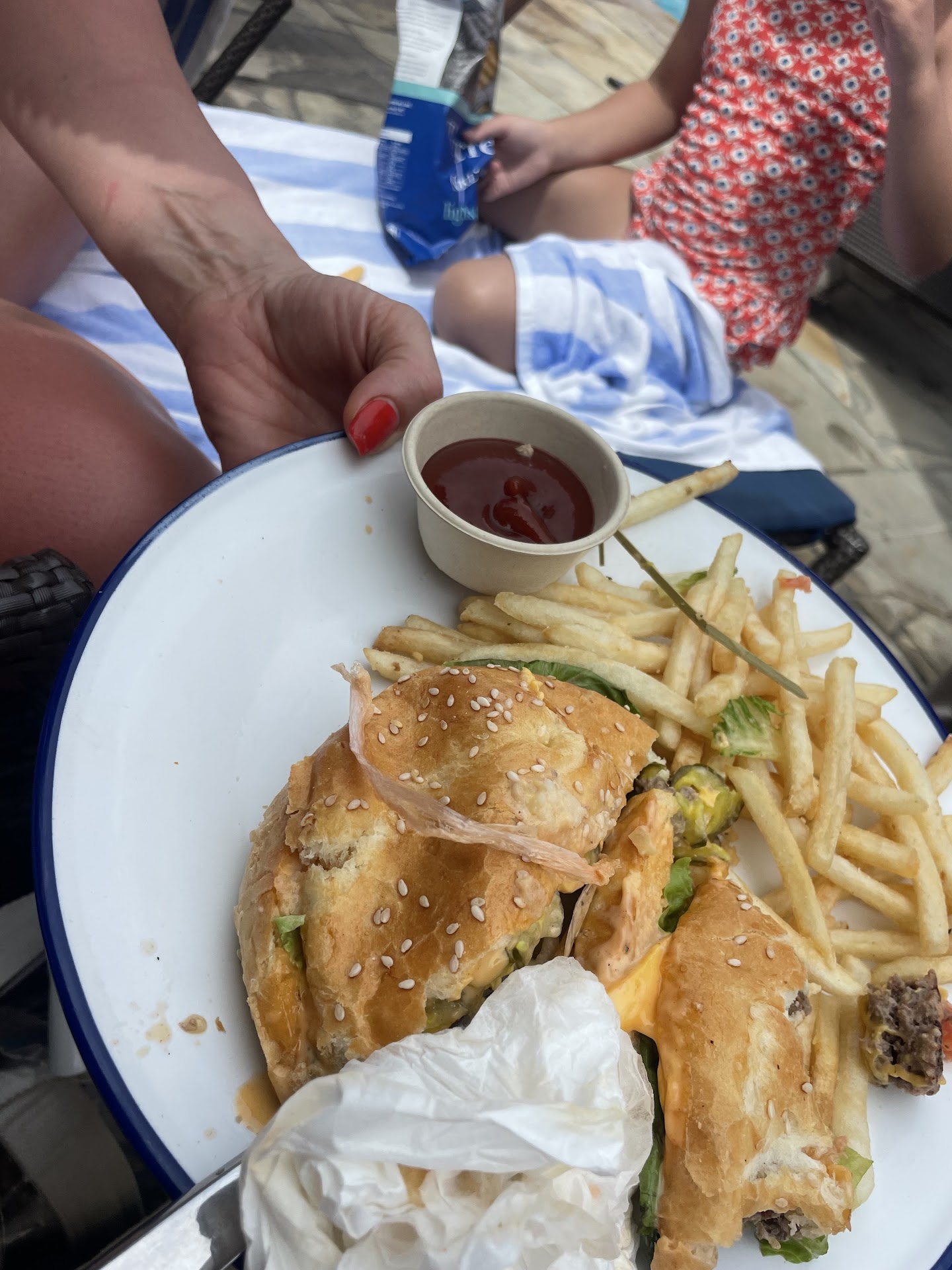 Lunch We ordered a Caesar and a croque monsieur by to pool. The Caesar was heavily dressed with a thick dressing made with bucket mayonnaise. We ordered it without chicken but got chicken anyway. A disappointment but nothing compared to the croque monsieur. White toast bread with cold unmelted cheese which was not guyere although the menu specified it to be. Soggy chips and dodgy presentation made us wonder if we ordered take-away from McDonaldâs or if this really was coming from a 5-star hotel restaurant.