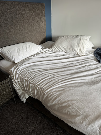 This is a tricky one. It's hard to fault the motel or management. To be really finicky, the shower in my room didn't have a soap holder and it was awkward adjusting the shower water temperature before showering without getting wet from the shower. Changes in water temperature were not immediate, so you could be standing under the shower and get a rush of cold water after adjusting the knob. These are not big issues and no reason not to stay there. It was fine except.... (and this is beyond anyone's control)