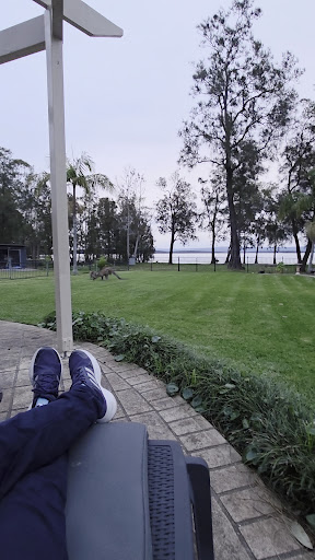 This was an absolutely wonderful place. The owner is amazing and nothing is too much trouble. The view out the full width and full height glass windows and sliding doors to the lake is beautiful. The room is huge, with a king bed, and a TV with Foxtel and a table and chairs for meals.