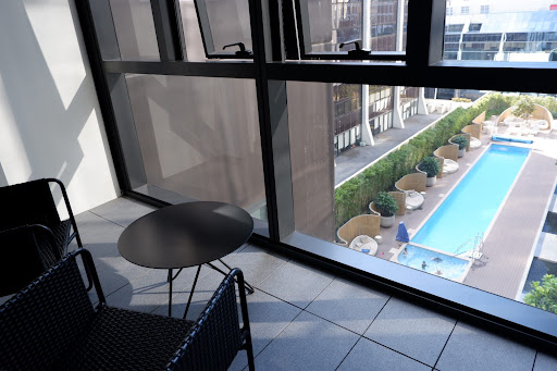We then looked at the pool. This was advertised on their website as an "infinity pool" however it looked like a regular rooftop pool to us. We understood that the very basic definition of an infinity pool is where the water flows over one or more of the edges of the pool, which produces the visual effect of the background surrounding it. In this case, the water within the pool stayed well within the boundaries of the pool and the water line was not even close to the edge (ie just a regular pool). This is quite misleading and they should consider revising their wording.