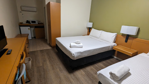 Read moreThe basic facilities are pretty disappointing, especially given the price ($314 for a queen and single bed). TV continuously drops out, toilet struggles to stop flushing, and the bins are only lined with a piece of paper towel and no bag at all. There are also no eating implements beyond a mug and teaspoon, which is very frustrating and makes having a fridge in the room essentially pointless (I can store food but can't eat it? Who does this??). Beds and bathroom seem generally clean, so I guess it's not all bad. Haven't checked yet if the aircon/heater, kettle or shower work, but wish me luck...