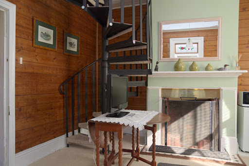 The studio is part of the old Spring Bay police station of, renamed Triabunna in 1836. What would have been a prison cell is still in the back. The building has two studios and a place where the owners live. A new bathroom, with good shower, has been fitted in the front of living room, making the living room smaller. In addition, a spiral staircase has been placed to reach the bedroom in the attic, making is smaller again. This spiral staircase is not suitable for people with disabilities or obesity and large suitcases (which need four wheels to be moved). Finally, a large flat screen television makes the living room tiny. There is no kitchen inside. A small cooking place and sink is outside and you can sit in the front garden. With fridge, microwave, toaster, kettle and kitchen utensils inside, you can prepare a small breakfast yourself. No breakfast is included. Compared to the living room, the bedroom in the attic is large, with a double bed and a single bed. The bedroom has air conditioning and a television. The double bed slept excellent.
