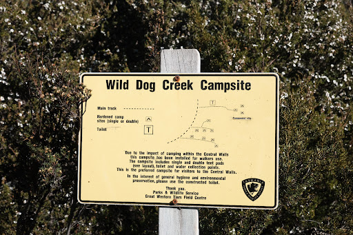 A nice tiered camping area with platforms for each site, some single and others for 2 tents. The sign is outdated and has platforms for groups to the left side of the path before the turn to the toilet. Warning: possums in this area are very active, don't leave your food out, and be careful to how you store your food, double-bagged in your rucksack, upside down in your tent's vestibule. Can get frosty at night in cloudless nights in Summer, so bring enough warm bedwear. This site is close to entry into the Walls area so makes for a relatively easy first...