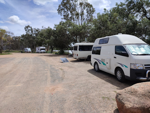 Primarily a boat ramp parking area that doubles as a free camping area. One toilet only which is usually clean enough. Two covered tables and one old electric BBQ. Very crowded on long weekends and school holidays with caravans, tents and motorhomes, often with jet-skis or ski boats. Rubish bins are emptied infrequently but BBQ and toilet cleaned most days. Floaring pontoon next to boat ramp is under repair and currently not accessible. The nearest general store & petrol outlet appears to have closed...