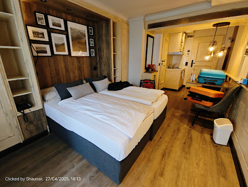 Read moreThis could be a lovely hotel. I’m sure it often is, but for us, sadly we just didn’t get to see it.||Firstly, we received an email to say there was a large group of young people staying so it might be a little louder. We rather naively assumed this would be a school group but it was a group of older teens who spent until 4am playing music, running about the corridors , shrieking and banging on doors. We chose not to confront them as we didn’t speak their language so just too awkward. We did make the hotel aware by email but no response to this.||What we were not advised about, was that the large group meant there was no restaurant available for dinner. Axams has next to nothing in it so to have no restaurant was not helpful. Thankfully the Hotel Kogele were accommodating and provided a delicious dinner.||The room is nicely maintained although had old food in the fridge on arrival. A selection of random plates and glasses (presumably brought up from the breakfast room) went with a hob and kettle making it a useful little base for a busy day.||The team were responsive when we asked for clean towels. We only needed them because the room was not cleaned on our second day and so the towels were not changed. The weather was not good enough to dry and reuse our towels unfortunately.||If you are booked to stay there then this hotel is ok. It’s fine. Basic, but fine. If you are warned of a group I strongly recommend you make use of any cancellation option you have and...