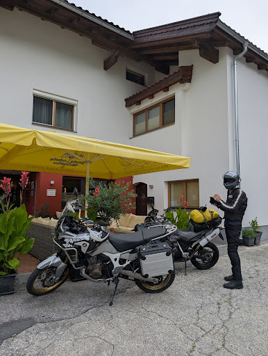 am ersten Tag unterhielt ich mich mit den beiden chef welche strecke hier am besten wäre, da das wetter nicht so prikeln war. auf der hompepage wurden von den chefs verschiedene touren für motorräder zusammen gestellt. Tour 9 hatte 205km und die Strecke überzeugte von vielen Landschaftlichen Punkten. am nächsten Tag führen wir die Strecke 7 360km. einfach ein wow Effekt! der brückenwird zwischen jaufenpass und timmelsjoch würde uns empfohlen auch dieser war Top.