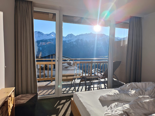 This is truly a great hotel, which started with uncomplicated reservations (in comparison to a different hotel nearby) due to our group size and the current health uncertainties. It is a friendly, family-run business; we all felt comfortable and at ease during our stay.||||The hotel does a lot of business with Dutch guests, so if you’re Dutch, you’ll feel right at home.||||The breakfast buffet is quite good, and on Friday evening we enjoyed the BBQ evening; it’s a set price of about €29 but for all you can eat. We appreciated the waitress suggesting we order small portions, with the knowledge that we could always re-order, so that food waste is kept to a minimum. The restaurant/bar also has a good selection of drinks and reasonably priced wines.||||The rooms are quite large, reasonably priced, and clean with simple but fresh decorations. The beds were just a bit too hard; some of our group felt their backs in the mornings, and the pillows were a bit lumpy. The rooms are very quiet however and you could hardly hear the other guests in their rooms, which was nice. If you want slippers or a robe you have to ask for them; they are not automatically in the room. There is however an (empty) mini-bar in the room, which is nice if you brings snacks that need to be kept chilled.||||The Serfaus/Fiss summer card was included in the room price, meaning we could ride most of the lifts for free; the card however does not cover the costs of bike transport, so if you’re a mountain biker going on the trails, keep this in mind.||||The hotel is well-organized for bikers with a locked-up shed and hose for cleaning bikes. There is lots of free parking, both in the garage and outside.||||The hotel’s location is quite high up on the hill on the outskirts of Fiss; see their website for a video on how to get there by car. The walk down to “downtown” Fiss about 15 minutes, and probably 20 going back up. Right above hotel is a hiking/biking path which leads to Serfaus base station.||||We would definitely return to this very nice hotel. Thanks...