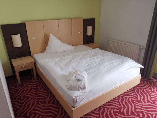 But it's also perfect for people. Everyone here is incredibly kind and friendly, always ready to help or offer advice. The check-in process was probably the fastest I've ever experienced—within 20 seconds, we were checked in and heading to our room. The room was also fantastic: very spacious, with a beautiful balcony overlooking the park. The balcony was also quite large, with chairs and a table. Ideal for smokers. Our room had comfortable beds with comfy mattresses. There was even a sort of pseudo air conditioning, which worked well for us, and even in the middle of a hot day, the room was quite pleasant. The bathroom was also very spacious, with a large walk-in shower. The toilet was separate from the bathroom, another plus. The room also had a minibar with some basic non-alcoholic drinks and beer, and it was handy for storing and chilling our own beverages. The blackout curtains were sufficient, and the soundproofing of the room was excellent. We were not disturbed by any noise from the hotel hallway or outside, either during the night or in the morning.