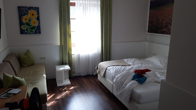 Und die Lage gefällt mir auch sehr: mitten im Grünen und sehr ruhig gelegen (Kirche direkt daneben hat weder am Samstag noch am Sonntag in der Früh vor 8h geläutet, später war ich unterwegs und weiß es nicht), nur 5 Minuten mit dem Auto vom Zentrum entfernt.