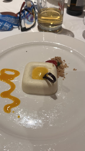 We were half board and we really enjoyed the food, there was a great self service selection for breakfast and the freshly prepared options very tasty, we chose the omelette on quite a few days. The evening meals were superb, after making a choice of main course each day there was also a salad bar and soup. The main courses were beautifully prepared (the hotel clearly has a fantastic chef and kitchen staff) and we certainly have to mention the cheeseboard- a great selection of local cheese each evening !