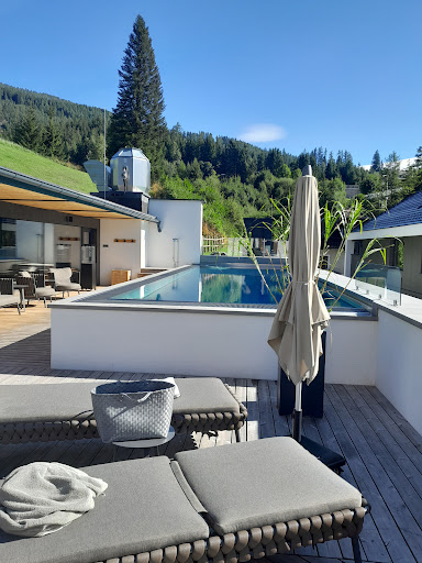 Der Spa Bereich ist wirklich auf 5 Sterne Niveau eingerichtet und niegelnagel neu. Der Pool ist warm, für die Sauna ist ein Aufgussduft vorbereitet, verschiedene Liegemöglichkeiten sowohl drinnen als auch draußen laden zur Erholung ein. Ein Kühlschrank mit Getränke und einem Sparschweinchen zur Selbstdienung sind am Start. Sogar an gekühlte Gläser für die Getränke wurde gedacht.