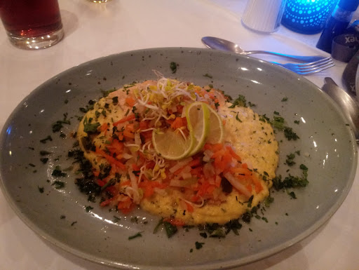 Fingerfood: kommt mit Fleisch, war aber veggie bestellt. Keine Entschuldigung. Es kommen einfach mehr Zwiebelringe und Mozzarellsticks (TK) mit vermuutlich fertigen Saucen. Der Bletterteigkram und alles in dem Fingerfood wohl TK Ware.