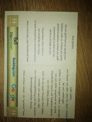 Wir waren 6 Nächte in dem Familienzimmer Flair ohne Balkon für 3-4 Pers. Nr 202. Laut Buchung ein 40qm Zimmer.||Bis einen Tag vor Abreise haben wir das so auch einfach geglaubt. Zwar hatten wir den Eindruck, dass das Zimmer ziemlich klein sei und hätten wir uns hier schon Beschweren sollen, aber bei einem 4-Sterne Hotel in Österreich sind wir davon ausgegangen, dass das so schon seine Richtigkeit hat.||Erst an unserem letzten Abend haben wir dann einen Tipp bekommen, uns doch nochmal mit der Zimmergröße zu beschäftigen. Wir haben dann die Fotos und Skizzen auf der Webseite verglichen und festgestellt, dass diese doch deutlich von unserem Zimmer abweichen.||Laut Skizze ist das Kinderzimmer genauso groß wie das Elternzimmer, verfügt über einen Schrank und Platz auf beiden Seiten der Ausziehcouch. Die Realität ist aber ein ca. 2x3,2m (ca. 6,4qm) großes Zimmer ohne Schrank, in das die Ausziehcouch rein gequetscht wurde. Foto Nr. 1 und Foto Nr. 2||Noch größer ist der Unterschied zu den Fotos auf der Webseite. Hier ist angeblich Platz für ein Tisch neben der Ausziehcouch und ein Schreibtisch samt Stuhl im Zimmer. Mit der Realität in unserem Kinderzimmer hat das leider überhaupt nichts zutun.||Wer jetzt glaubt, unser Elternzimmer wäre dafür einfach größer gewesen, der irrt leider gewaltig. Die Skizze des Elternzimmers ist relativ korrekt. Die Fotos des Elternzimmers auf der Webseite dagegen nicht. Glaubt man den Fotos verfügt das Elternzimmer über eine Tisch mit einer Doppelsitzerbank, einer Einsitzerbank und einem Stuhl. Vorhanden war aber lediglich eine Einsitzerbank. Die Größe des Elternzimmers betrug ca. 3,2m x 3,2m (ca. 10,24qm).. Foto Nr. 3||Die Toilette ist ca. 1,10m x 0,90m also so in etwa 1qm!||Das Bad ist ca. 3,5qm groß.||Der Flur ist ca. 5qm groß.||Insgesamt kommen wir bei dem Zimmer also auf ca. 26,5qm. Selbst wenn wir an manchen Stellen nicht perfekt gemessen habe. (Wir mussten ein flexibleres 1-Metermaß nehmen), sind wir extrem weit von den angeblichen 40qm weg.||Als wir den Juniorchef mit den Bilder und der Skizze konfrontierten, betonte dieser die Bilder seien vielleicht etwas irritierend, die Zimmer seien unterschiedlich geschnitten, aber in unserer Kategorie alle 40qm groß und nur darauf käme es ja an. Wenn wir Ihm nicht glauben, sollen wir doch nach messen. Unsere Bitte uns beim Messen zu helfen, hat er leider abgelehnt. Nach dem wir dann gemessen hatten, war der Juniorchef laut Rezeption leider nicht mehr zu sprechen.||Stattdessen waren nun zwei weiteren Hotelmitarbeiterin an der Rezeption (eine davon nach eigener Aussage nicht im Dienst) und redeten auf uns ein, dass wir lächerlich sein. Wir hätten doch am ersten Tag nachmessen sollen und sollen es jetzt nehmen wie es ist. Wir seien ja schließlich selbst dran Schuld. (Als wenn es unsere Schuld wäre, dass man hier ein 26,5qm Zimmer als 40qm Zimmer verkauft). Ein Verhalten wie von diesen beiden Frauen, insbesondere von der im mittleren Alter, dunkelbraune bis schwarze Haare und Brille, die uns als Hotelgäste auslacht, als lächerlich verunglimpft und laut tönt, wir sollen doch eine Bewertung schreiben und verschwinden, Bewertungen seien ihr eh vollkommen egal, hab ich so noch nie erlebt.||Nicht nur wir sondern auch zwei andere Gäste konnten Ihren Augen und Ohren kaum trauen, wie sich die beiden Damen hier aufgeführten haben.||(Davon ausnehmen möchte explizit die dritte Dame an der Rezeption, eine junge Dame namens Ir..., Sie wollte oder konnte uns auch nicht helfen, war jedoch jederzeit genauso höflich und respektvoll zu uns, wie wir zu Ihr.)||Vielleicht kann man hier auch Glück haben und ein gutes Zimmer bekommen, aber wenn man Pech hat, kriegt man ein Zimmer, dass definitiv nicht die angegeben 40qm hat. Wer seine Kinder gerne in ein 6,4qm Käfig sperrt und sich gerne von Hotelpersonal auslachen, verunglimpfen und im Endeffekt für Blöd verkaufen lässt, ist im Hotel Tyrolerhof unsere Meinung nachgenau richtig.||Allen anderen würden wir dann doch empfehlen ein anderes...