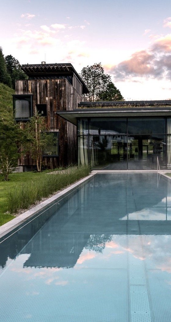 Der Spabereich ist - wie sollte es auch anders sein - ebenfalls großartig. Alles ist sehr clean gehalten, hygienisch einwandfrei (es gibt natürlich Desinfektionsmittel-Spender) und sehr gemütlich. Der Außenpool hatte heute Morgen 17C, der Innenpool 26C. Die Sauna bietet ein wortwörtliches Fenster in die Natur: grasende Kühe, saftige Weiden und selbstverständlich die Berge. Trinkwasser, Wildblumentee, Nüsse und Äpfel werden im Ruhebereich angeboten.