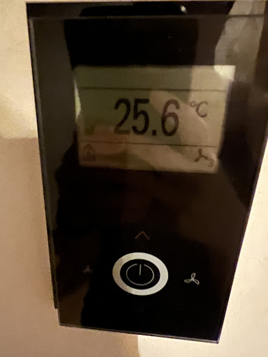 The room is incredibly uncomfortable because of the heat. The AC goes down to 21c but never achieves that temperature, lowest I saw it get was 24.4c. Even with the blinds and shades closed.