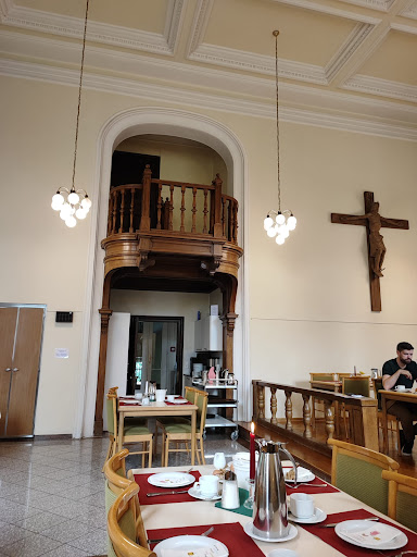 I found this place on Google maps, looking for a place our friend remembered from about 30 years ago...this wasn't it, but it was a great replacement, maybe even better!! The castle is completely enclosed, so you ring a bell at the entrance gate to get in and then you have your key for letting yourself in and out. The building has quite a history and the walks on the Moenchsberg could not be beat! We even walked to the Fortress from here, never having to go down into the city at all. The closest restaurant was at the Modern Art Museum where the elevator down into the city is. If you eat there, they include a free ticket back down into the city with your receipt! This museum is where the Cafe from the Sound of Music used to be, but the view from the current cafe is still as good. But back to the Schloessl, we loved our three-night stay here, breakfasts were good, service was impeccable both in the dining room and at the front desk. They even did some laundry for our friend. Of course, don't expect all the modern amenities like a TV and super-fast wifi, but normally this place is for church retreats, and we were just glad they allowed four people to stay not affiliated with the church or a retreat. It was a great place to return to after a day in the city. I should mention taxi drivers don't always relish the idea of driving up here, but we never had a problem convincing somebody to take us. The cost spread four ways was more...