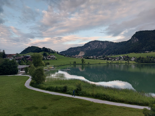 Read moreWir (2 Erwachsene, 1 Baby und 1 Hund) haben uns in der Ferienwohnung "Alpenglühen" wirklich sehr wohl gefühlt. Es hat uns an nichts gefehlt. Die Lage ist toll und man genießt sowohl von innen in der Wohnung, als auch vom Balkon und unten vom wunderbaren Garten und Whirlpool aus, einen traumhaften Blick auf den See und die Berge. Auch wenn es bei uns das Wetter nicht zugelassen hat, kann man ganz toll über den hauseigenen Steg ein Bad im See nehmen oder eine Runde mit den zwei frei zur Verfügung stehenden SUPs oder dem Ruderboot drehen. Für den Garten stehen Liegen zur Verfügung. Im Keller befindet sich außerdem eine Infrarotsauna. In direkter Umgebung befindet sich ein tolles Spielgelände für Kinder. Wir fanden es außerdem toll, dass ca. 100m entfernt ein sehr guter Bäcker ist und man im Ort auch sonst alles findet was man braucht (Spar, Post, Restaurants). In nur 15 Minuten ist man nach Kufstein gefahren und kann dort einiges mit der Gästekarte machen. Was wir gerne anmerken möchten, auch wenn es für uns kein Problem war, ist das recht kleine Bad und das ziemlich laut knarzende Bett. Zu guter Letzt möchten wir uns bei der Hausdame recht herzlich bedanken, sie ist jederzeit erreichbar und kümmert sich toll...