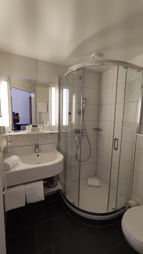 The hotel staff spoke both German and English. Our room and bathroom were both very clean. The rooms were well isolated, I didn't hear any noise from outside or from other guests, and slept very well. But note that our room was on the top floor at the end of the corridor, and didn't face the street side. 2 Pillows were provided per person so you could choose your preferred pillow height. Minibar was available for additional payment.