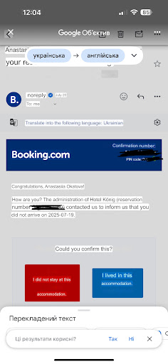Read moreОстанавливались на 2 ночи с сотрудницей. У нас был в понедельник ранний вылет из Вены, поэтому не успевали приехать на самом первом автобусе из Нитры. Решили приехать не на одну ночь, а на 2, чтобы в воскресенье посмотреть Вену. Гостиницу бронировали заранее, дней за 10. Выбирали долго, бронировали через букинг. Выбрали самый дешевый из предложенных в этом отеле номер на двоих. Цена была ниже за счет двух ярусной кровати. Да и сам номер крохотный, меньше других вариантов. Но для "переночевать два раза" нам показалось достаточно. Ок. Заплатили и успокоились. Каково же было нам по приезду услышать, что это номер на одного человека!!!! Шок. Растерянность - деньги немалые, около 180 евро. А ведь были варианты и более крутых отелей в том же микрорайоне, за 203 евро на двоих за 2 ночи, например. Я открываю свой кабинет букинга и показываю, что забронированный нами номер на двоих!!!!! Портье с кем то долго беседует по тел, говорит ок, надо подождать до часу дня. У меня очень плохой английский, поэтому звоню мужу, даю трубку портье, и тот подтверждает, что все ок, но надо подождать до часу. Оставляем кучу чемоданов, рюкзаки с ноутами практически на полу между стойкой регистрации и обеденными столами, потому что камеры хранения вещей нет, ресепшн как такового тоже нет - узенькое пространство переоборудовано под кафе, или как они себя громко именуют ресторан. Стоять перед стойкой с портье почти вплотную попами к носам завтракающих постояльцев не самая приятная "поза". Портье при этом еще и официант, который то и дело убегает то на кухню, то к микроволновке, то к клиенту.... Кошмар из которого хотелось побыстрее уйти. Взяли самое необходимое и поехали в Вену. Из Вены вернулись около 17 часов, и нас тут же обрадовали, что мы должны доплатить 46 евро за номер. Сказать, что мы расстроились, это просто промолчать. Мы пытались снова объясниться, показать бронь, но портье сказал или доплачивайте или один человек. Ок. Мы доплатили и попросили фактуру. Нам сказали, что дадут утром. Ок. Далее, в номер можно попасть на маленьком лифте, который запускается ключом. Портье видел, что мы в шоке и не можем запустить лифт, однако не торопился нам помочь. Пришлось просить, хотя он стоял тут же рядом, в метре от лифта и наблюдал попытки вставить ключ и нажать этаж. Кто же должен догадаться, что ключ надо еще повернуть в замке. Лично мне с такими допотопными лифтами не приходилось сталкиваться. Комната... Поражала своей крохотностью и необдуманностью дверей. Если открыть шкаф, то блокируется входная дверь и дверь ванной комнаты. Почему бы тогда не поставить шкаф с дверью на полозьях? Справедливости ради надо сказать, что номер был идеально чистым, батареи все работали (был конец октября, похолодало и мы включили отопление в комнате и в ванной). В ванной были салфетки, жидкий гель возле умывальника и в душевой. Претензий никаких нет. Все в ванной и туалете идеально работало, одно удовольствие.|Вот про комнату такого не скажешь. Нет ни тумбы под чемоданы, стул только один, а нас двое (и кстати, с доплатой нас могли бы поселить в другой просторный номер!, т.к. самый дорогой стоил около 200 евро на букинге, а мы в целом заплатили ближе к 230! Просто мы не хотели себе окончательно испортить настроение). Так вот, кровать нижняя терпимо удобная. А верхняя одно название. Она очень близко к потолку, а потолки в но