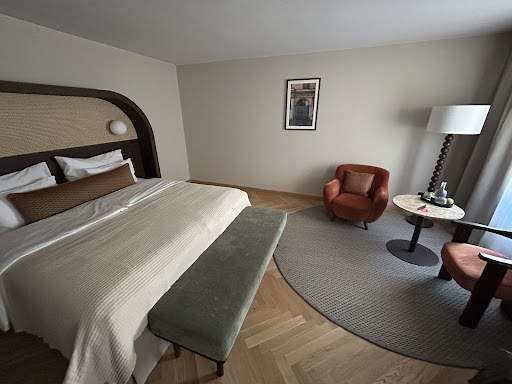 My absolutely favorite part of our stay was the breakfast — absolutely worth the extra cost at booking. It felt like a luxurious event each morning. Our wonderful servers, Rick and Anna, were warm and friendly and we loved starting our day with them. Alongside a full buffet of fresh-baked goods, gourmet meats and cheeses, we could order hot dishes from the kitchen. We particularly loved the Shakshuka and eggs benedict. The cappuccinos were perfection — rich, velvety, and made with care. We’re admittedly coffee snobs and were impressed by the quality of the drinks each morning. We also enjoyed visiting the bar in the evening and getting a nightcap before heading up to bed.