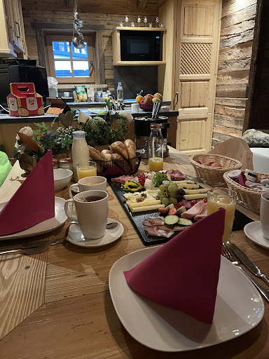 Wir waren 5 Tage im Bergchalet zu Gast und waren hin und weg. Bereits die Begrüßung war sowas von herzlich und gastfreundlich - das war wirklich der Wahnsinn! Es stimmt einfach alles. Angefangen von kleinen, liebevollen Details bis hin zu einem vollständig durchdachten Konzept. Nicht nur das unglaublich gemütlich eingerichtete Chalet mit jeder Menge Sitzmöglichkeiten und einem wunderschönen Kamin laden zu einer Runde Kuscheln ein. Auch der ganz private Wellnessbereich mit eigener Sauna und dem Hot- Tube bieten die perfekte Möglichkeit für einen wunderschönen Tag voller Zweisamkeit. Auf der Terrasse können Vorhänge zugezogen werden, sodass der Zweisamkeit nichts im Wege steht. Auch das Frühstück bietet alles, was das Herz begehrt. Dieses kann täglich bis 15 Uhr über das Tablet im Chalet bestellt werden. Hier ist wirklich für jeden etwas dabei. Angefangen von verschiedenen Wecken, Croissant, Brot, bis hin zu Müsli, Joghurt, Obstsalat, Käse, Wurst, Eier, Marmelade, Nutella und einen täglichen Gruß aus der Küche, sowie ein hauseigenes Prospekt mit dem aktuellen Wetter usw. Auch bei der Ankunft wurden wir direkt mit einer Vesperplatte, sowie einer Flasche Weißwein überrascht. Es sind einfach die kleinen Aufmerksamkeiten, die sich zu einem perfekten Ganzen zusammentragen. An einem Nachmittag standen plötzlich zwei Stücke Kuchen bei uns im Kühlschrank, als Gruß aus der Küche. Auch das Prechtlstadl - Restaurant bietet ein hervorragendes Essen an!