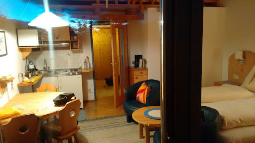 Knaller-Möd is in the center of the Techendorf vilage, close to the bridge that crosses the Weissensee and leads to the ski slopes. ||||Parking area for guests is on the road on the side of the hotel. There are several good restaurants in a five minute walking range. Ground floor has large and well stocked grocery store.||||We stayed in studio for two, that has quite spacious rooms. ||Entrance hall is large, with big wardrobe and shoe closet. ||Bathroom and toilet are separate rooms, well lit. ||Main room consists of kitchenette and bedroom section, with large balcony.||Apartment is clean, roomy and well equipped (there is even tray for wet shoes in the hall). ||Kitchenette has cutlery set for 4, so you can even entertain few guests. ||Kitchen is basic, but property has larger kitchen and eating room that you can use for more complex meals.||Common area also has a children playroom, lots of books and board-games available, large terrace, Finnish sauna, ski storage, bicycle rent and so on.||Soundproofing from the outside is good. With closed windows we did not hear sounds from big party just across the lake. ||||With our room we also got Premium card that gave us free entrance to ice skating, Nordic skiing, and free local bus rides. There wer lots of hiking trails around the lake and village, for all levels of skill and fitness||Staff is not on the premises 24/7, but they are around and accessible over the phone. Anything we arranged with them was handled easily and without problems. ||||Good place that I...