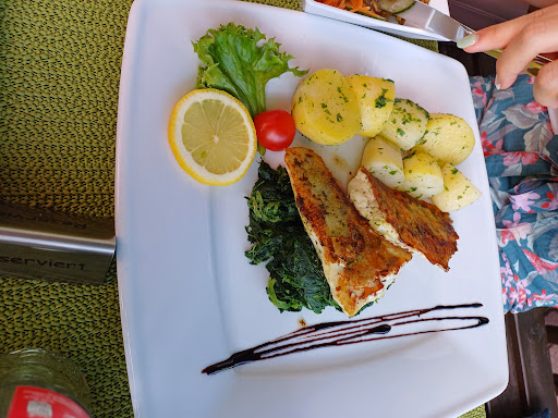 dann sind wir mal am Weissensee und irgendwo am Straßenrand steht ein kleines Schild mit "Wildwochen vom ...bis...September. Na prima, aber dann... sagt der Bauer, der unsere Kutsche lenkt, probieren Sie mal aus, der Chef ist Jäger. gesagt getan. mittags mal hin, tolles Wetter und liebe Bienen auf der Terrasse. und dann mal bestellen. Zweimal Hirschmedaillon mit Polentataler, Broccoli und Schwammerlkruste.||Und dann Haus dich unter den Tisch, so lecker, gut zubereitet, exzellente Sauce und ein fantastische Fleischkwalität. Gute Gnade was für ein Geschmack, keine übertriebene Schnick Schnack, nicht überwürzt mit Konsumkräutern. Zarter Hirsch, flaumige Taler, bissige Schwammerl, wenn der Koch die Birne mit Preiselbeere weglässt und den Keks Obers auf Orange ist das Gericht perfekt. Denn die Süße der Preiselbeere stört nur den ausgewogenen Geschmack der Souce. ||und wir waren am nächsten Abend gleich wieder da, und haben einen Traum von Rehfilet gegessen. ich habe den Geschmack und die Zartheit des Fleisches noch im Mund. Nächstes Jahr wieder, aber dann am ersten Tag, dann wird die Hirschleber wohl nicht...