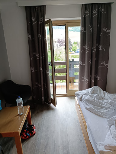 The establishment is very clean & tidy, & the beds very comfortable, with panoramic mountain, ski slope & hillside village views (dependant on the side of the hotel you're on). There is also at least 01, maybe 02 small flats, consisting of an open plan living, dining, bed & kitchen room, a bedroom behind the main room, & a shower room off the back bedroom, suitable for families, with enough space for camp beds/inflatable matresses, if there're more than 02 kids.