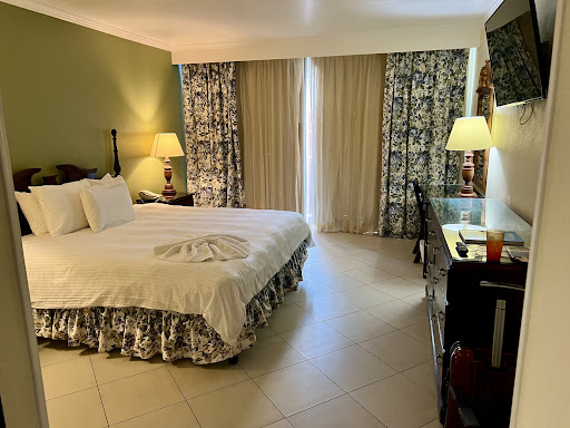 Room: Because we had my handicapped mother with us, our room was on the ground floor. It had a walk-out patio with a "beach view" and hammock; a table and chair were added later in the week. These are amenities other rooms didn't have, which felt lucky until we learned some things: -The shower didn't always work and never closed properly, so every day, our bathroom flooded. -The toilet didn't flush properly and as such, the bowl was also never cleaned. -Intermittent housekeeping was simply unacceptable when there's a sandy patio at one entrance and a flooded bathroom at the other of a tile floor. -Sometimes, TV only had sound. Several of the dresser drawers were broken. Many of the outlets did not work.